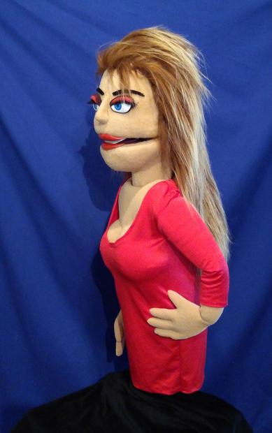 Professionally made hand and rod style. The puppet stands around 24" tall. Constructed out of high quality materials including 1/2" polyfoam, dyed Muppet fleece, wire under layments in the fingers for posable gestures. Arm rods included. (this puppet is not for children)